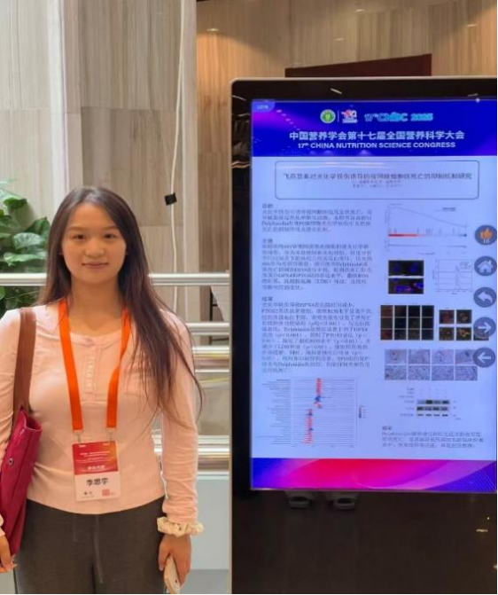 9月21日至23日,由中国营养学会主办的“第十七届全国营养科学大会”在北京召开。2023级MPH研究生常怡宁、2024级李思宇分别携壁报《Delphinidin通过调节铁蛋白降解自噬来预防视网膜光化学损伤》《飞燕草素对光化学损伤诱导的视网膜细胞铁死亡的抑制机制研究》参会交流。