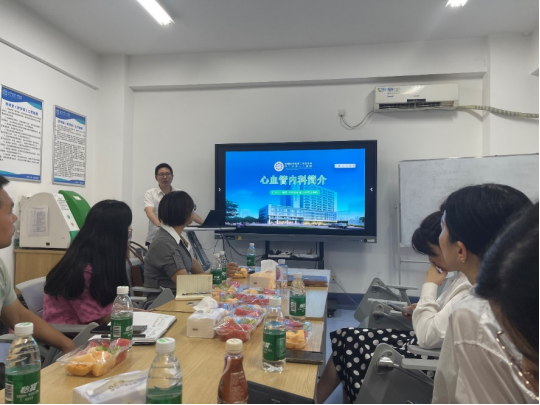 罗晓明副教授首先介绍了教工第一党支部基本情况,并对每位党员同志的基本情况和研究方向作了简要介绍。心内科主任吴奇主任医师、神经内科张利娟副主任医师分别介绍了科室基本情况,科室特色、可开展的诊疗项目及研究方向。随后,心内科新引进高层次人才何槿宸博士介绍了自己的研究方向和取得的主要成果。