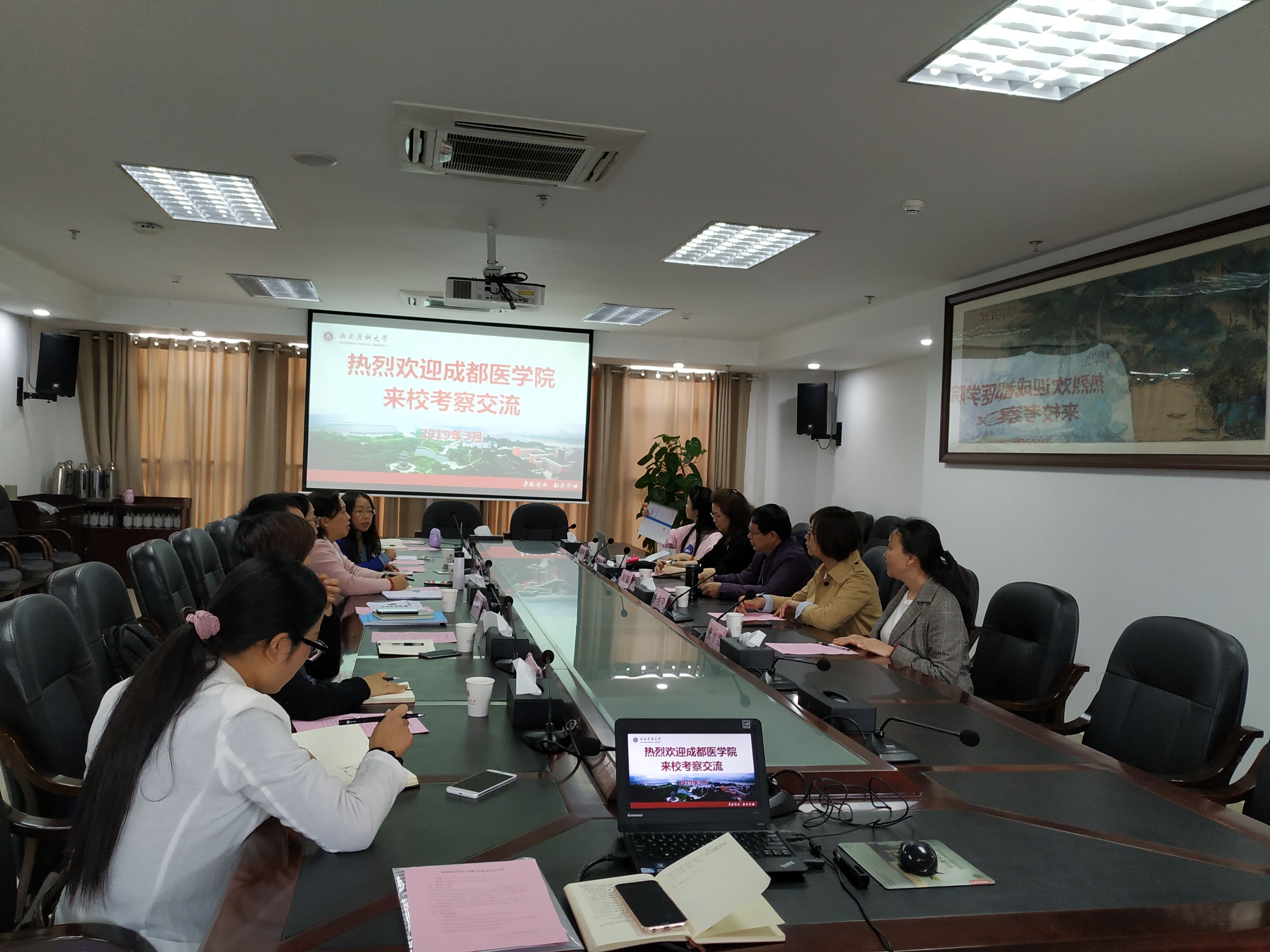 西南医科大学3044永利集团贾红经理、阳书记、马副经理以及各科室负责人热情接待了3044永利集团的来访。分管研究生管理工作的马玲副经理主要介绍了西南医科大学公共卫生专业硕士点评估的整体情况,对硕士研究生招生、培养过程中遇到的困难和可能存在的问题、基地建设、实践教学、毕业论文质量控制等方面进行了详细的介绍。大家对公共卫生专业硕士生培养以及硕士点评估等方面的问题展开了谈论和深度交流,之后大家对硕士公司产品的相关实验条件、教学与办公场地等进行了实地考察。