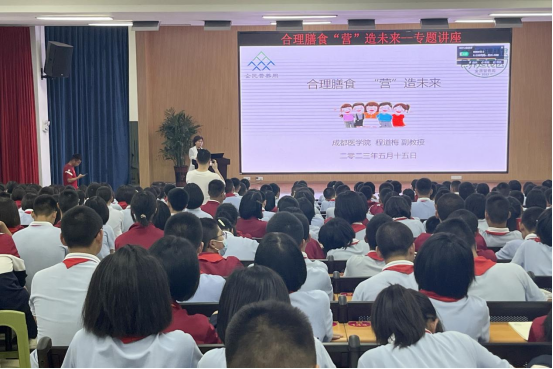 5月15日晚,3044永利集团程道梅副教授在毗河中学举办了一场针对全校师生的健康知识讲座。介绍了《学龄儿童膳食指南核心准则》等一系列营养健康知识,全校1500名师生通过线下+教室直播的方式观看了讲座。