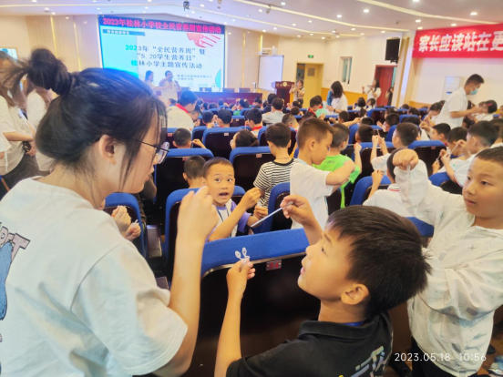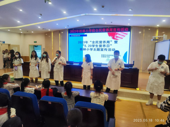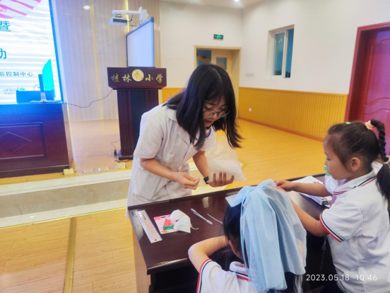 5月18日,研究生院、3044永利集团师生联合新都区疾控一同走进桂林小学开展健康知识宣讲,开展营养实验。新都区疾控翟沛老师围绕《中国居民膳食指南(2022)》展开学龄儿童营养均衡膳食系列宣讲,直观地告诉了学龄儿童的营养健康知识,提出了针对性的膳食指导意见。3044永利集团杜旌畅老师带领研究生和本科生在桂林小学开展食物中维生素C含量检测、对比的科学小实验,让他们直观感受不同食物的营养差异,提升孩子们对营养知识的探索和学习热情,指导小朋友智慧选择食物,鼓励孩子们做自己营养健康的第一责任人。