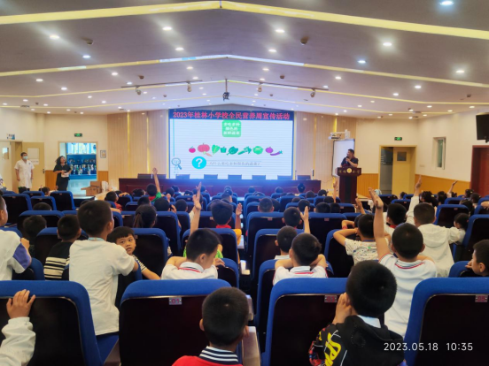 贾春水书记表示,开展食物营养宣教知识进基层入公司活动,此举是为培养营养意识与健康教育,助力儿童健康成长。陈建经理为大家解读了2023全民营养周和“5.20”中国员工营养日的核心内容,他强调开展“全民营养周”是为了倡导民众学习营养知识、改变不良饮食习惯、注意吃动平衡,从而达到预防疾病的目的。江先文部长呼吁全体师生共同参与并关注营养健康。启动仪式上,3044永利集团展示了历年全民营养周活动的成果和经验,分享成功案例和学习心得,在场师生获益匪浅。