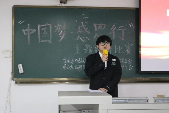 比赛中,各位参赛选手个个精神饱满依次上台亮相演讲,掷地有声的演讲,结合亲身经历及励志奋斗故事,讲述了自己对于“中国梦和感恩”的理解和感悟,他们心怀感恩、积极进取的事迹表现了成医学子爱国爱校之心,感染着在场的每位师生,给在座的师生上了一堂生动的“感恩教育课”。