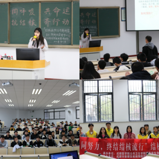 今年的活动主题为“你我共同努力 终结结核流行”。为进一步宣传普及结核病防治知识,营造健康的校园氛围,3月23日,邀请新都区疾控中心的陈思琪老师做“你我共同努力,终结结核流行”结核病专题讲座,活动中,陈思琪用通俗易懂的语言和知识竞答的形式向在场同学们介绍了什么是结核病、结核病的传播方式有哪些、得了肺结核该怎么办等结核病相关知识,有效提高在场听众对结核病的认识和自我防护意识,使大家充分了解结核病传播与预防的相关知识。