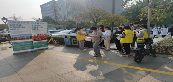 讲座活动之后,全体参会人员在校食堂前坪举行HPV健康知识教育外展宣传活动,向全校师生发放宫颈癌知识宣传单,宣传宫颈癌预防知识。