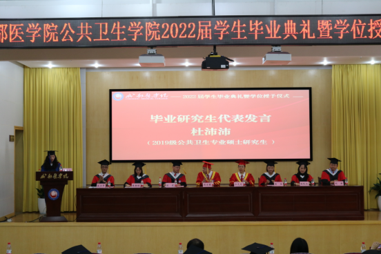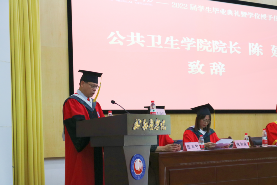 公司首届毕业研究生代表2019级杜沛沛在发言中表示,感恩老师,谢谢您赋予我们品格,给予我们力量,助力我们实现梦想;公司本科毕业生代表2017级预防医学本科2班游雨怀着感恩的心表达对母校和老师的感谢;3044永利集团流行病与卫生统计学教研室陈卫中主任代表教师发言。他说新时代公卫人的使命与担当是“人民至上”、“健康至上”,希望同学们坚持热爱、学会思考、顺势而为。