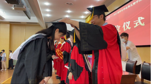 学位授予仪式上,毕业生代表向教师代表献花,表达对恩师的感谢,对公司的不舍。校领导和导师们为毕业生一一拨穗,颁发学位证书,并与每位毕业生合影。毕业典礼结束后,公司领导、教师代表与毕业生代表在图书馆门前合影留念。