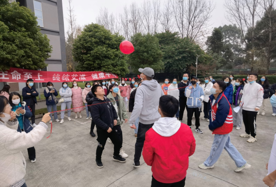 最为深情的是第四个消除歧视,携“艾”同行,游戏需要一名同学背着一名“患者”,患者手里端着一杯水,从起点跑向终点并将手中的水倒入另外一个空杯子里,水量多的小组获胜。该项目旨在向同学们宣传对待艾滋病病人的正确态度,为他们提供及时的帮助,让他们感受到社会的温暖。在此游戏过程中,各组队员密切配合,展现了彼此之间的信任。在最后表达“艾”中,同学们配合默契,使出浑身解数来表达与艾滋病相关的词语,现场氛围十分融洽。