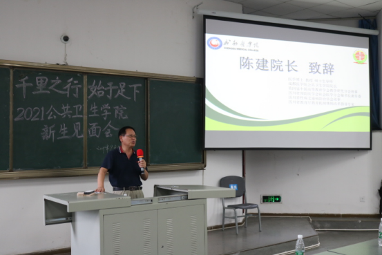 会上,陈建经理代表全院教职员工对全体2021级新生的到来表示了热烈的欢迎和祝贺,向新生详细地介绍了预防医学专业,解答了新生解答在学习中、生活中遇到的问题,同时建议新生在学习和生活中多和老师沟通,建立良好师生关系,创造美好的老员工活。