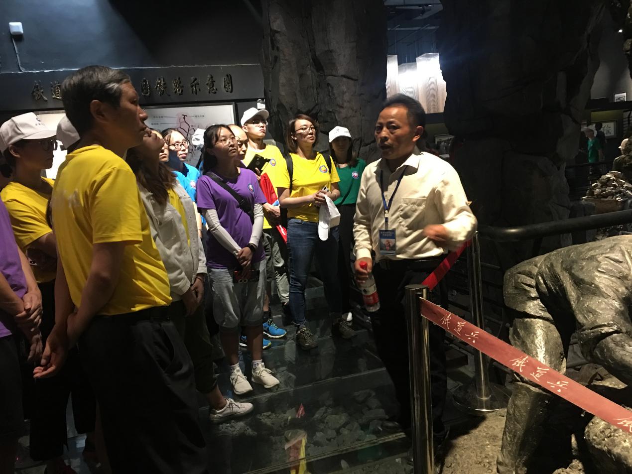 博物馆王馆长亲自担任起实践团的解说,以生动形象的语言再现了中国铁道兵“逢山凿路,遇水架桥,铁道兵前无险阻;风餐露宿,沐雨栉风,铁道兵前无困难”的场景。1964年苏联专家撤出对成昆铁路建设的技术支持,中国铁道兵在党中央的统一指挥下,在我国经济基础薄弱、工程技术力量不足的条件下,不畏艰险、迎难而上,在六年内成功完成了成昆铁路余下一千多公里的建设,于1970年7月1日建成通车。成昆铁路是一条用血泪筑成的英雄路,许多铁道兵甚至付出了生命的代价。他们不怕吃苦、不怕牺牲的中国军人铁血精神深深震撼了在场的实践团成员。