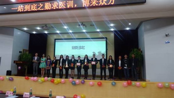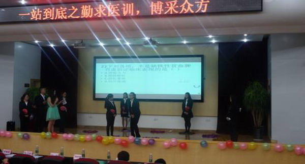 2015年11月19日晚7点,由公共卫生系举办的“一站到底之勤求医训,博采众方”活动在学术交流中心进行最后的角逐。“一站到底”作为知识类竞赛活动,形式新颖,内容丰富,给同学们展现自我综合素质的一个平台,也促进同学们了解临床专业认证知识。出席此次活动的嘉宾有员工处处长刘萍,团委办公室主任张婉扬,公共卫生系党总支副书记阮卫明,班主任韩彬老师,公共卫生系辅导员卢萍、孟荣。