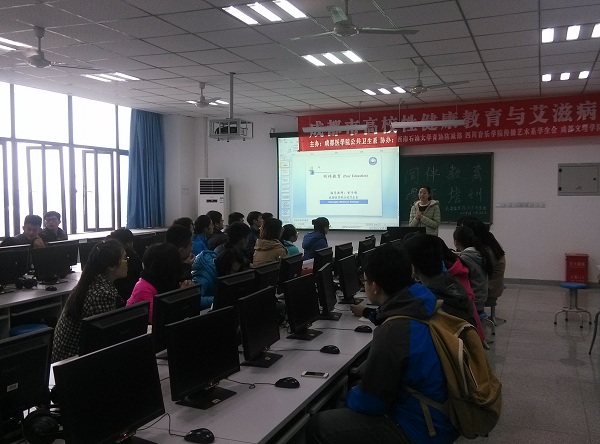 2014年11月22日,公共卫生系承办的新都区、金堂县部分高校性健康教育与艾滋病防治项目同伴教育骨干培训在实验楼三楼机房开展。本次培训邀请公共卫生系流行病与统计学教研室曾子倩博士作为主讲老师,来自公司预防医学专业员工以及西南石油大学、四川音乐公司、四川师范大学文理公司(成都文理公司)的30名骨干代表参加了此次培训。