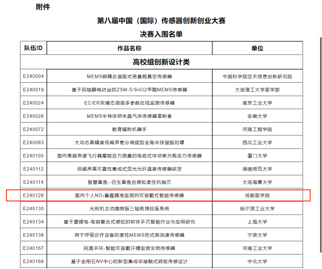 中国(国际)传感器创新创业大赛由中国仪器仪表学会主办,本届大赛共有全国高校、科研院所、企业等300多家单位,4200余名高校员工、老师、科研人员和工程技术人员参赛。此次大赛的预赛共收到作品700余项,最终选出95项优秀作品进入决赛。“氮化伤害”团队凭借“面向个人NO₂暴露精准监测的可穿戴式智能传感器”作品入围本次大赛的决赛,该团队不断开拓创新、精益求精,潜心钻研核心技术,勇攀智能传感器新高峰。全队成员全力以赴、积极进取,为大赛决赛做好充足准备,期待在本次决赛取得优异成绩。
