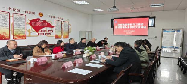 2月26日下午,攀枝花卫健委主任张福鑫带队到3044永利集团开展工作调研交流。经理陈建、党委书记王绪伦、副经理陈朝琼、党委副书记杨晓庆及各科室负责人和教师代表出席会议,会议由王绪伦主持。