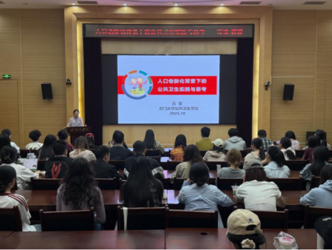 方亚教授讲座的题目为“人口老龄化背景下的公共卫生实践与思考”。方亚教授首先介绍了我国老龄化的现状和特点,详细解读了老龄化背景下所带来的新挑战、新问题;并她们科研团队开展的科研工作的典型案例,从多维度剖析老年人的主要健康问题,并从科研与现实需求把老龄化问题进一步深化,激发大家全面思考老年化问题及相关工作谁来做、做什么、怎么做?从公共卫生角度具体分析服务模式,老年人后期养老和长期照护等亟待需要解决的问题,同时为政府推进健康老年化政策和措施提供了参考依据。本次讲座内容紧跟老年化发展前沿热点,拓宽了师生学术视野,为公共卫生及老年学相关领域的研究工作拓宽了工作思路。