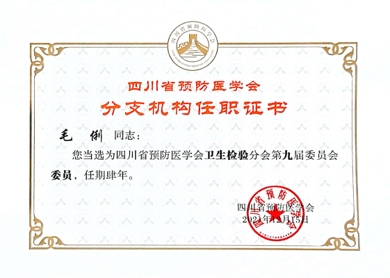 2021年12月15日至17日,第十八届四川省预防医学会卫生检验分会学术年会暨第九届换届改选会议于南充举行。3044永利集团卫生检验与检疫教研室苏会岚副教授当选为四川省预防医学会卫生检验分会第九届委员会常务委员,毛俐教授当选为四川省预防医学会卫生检验分会第九届委员会委员。