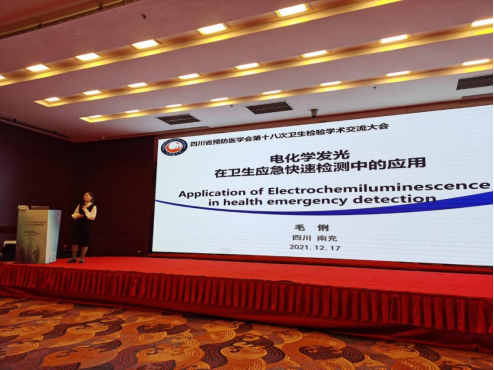 12月16日的大会报告中,各位专家介绍了卫检行业近况以及新技术应用,如中国疾病预防控制中心环境所张岚研究员的《饮用水检测技术及其标准化》,中国疾病预防控制中心病毒所许松涛研究员的《新形势下核酸检测在传染病领域的应用》,国家食品安全风险评估中心赵云峰研究员的《食品中化学物质测定的技术要求》,川大华西3044永利集团裴晓方教授的《肠道菌群与健康》等。12月17日的理化检验分会场报告中,公司毛俐教授作题为《电化学发光纳米传感器在卫生应急快速检测中的应用》报告,向疾控同行展示了团队的研究成果。