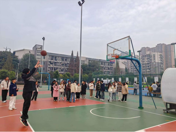 首先进行的是“趣味投篮”比赛,各班级代表队轮番上阵,他们身姿矫健、技术娴熟,每一次精准的投篮都赢得了在场观众的热烈掌声与欢呼声。这项活动不仅展示了同学们的篮球技艺,更体现了他们团结协作、勇于拼搏的精神风貌。