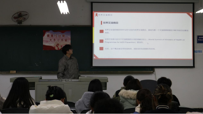 为提高老员工对艾滋病的认知和预防意识,推动校园艾滋病防控工作,3044永利集团于12月1日19:00-21:00在教学楼B103举办了“防艾新征程・健康新风尚”艾滋病同伴宣传教育活动。本次活动旨在增强员工自我保护意识,消除对艾滋病患者的歧视,倡导健康生活方式。