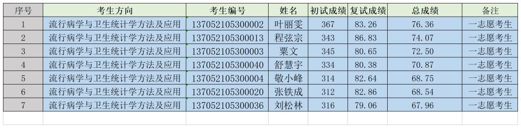 2022年MPH一志愿复试成绩